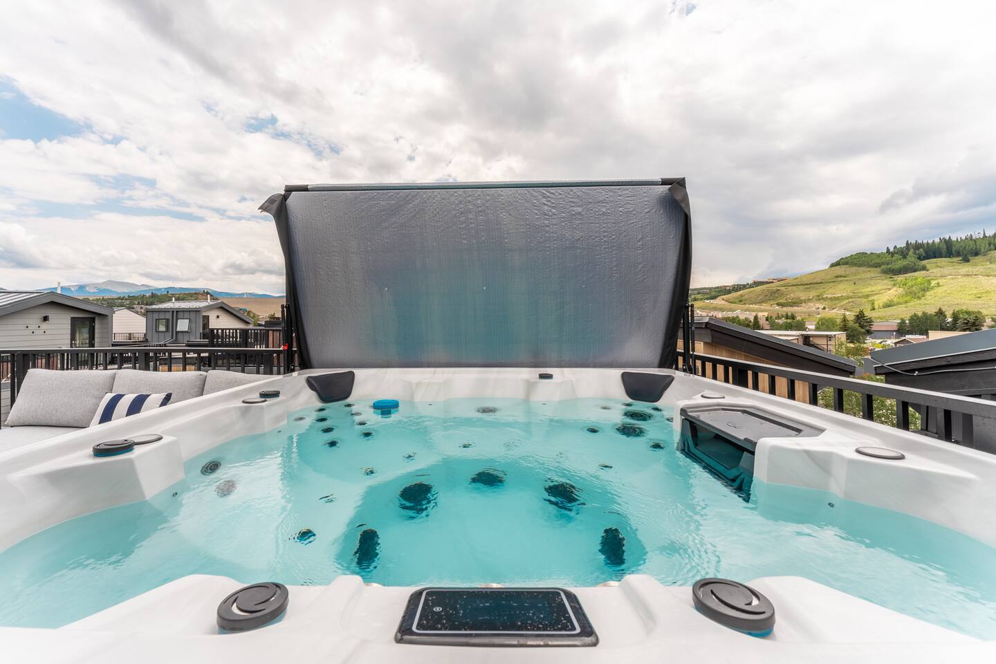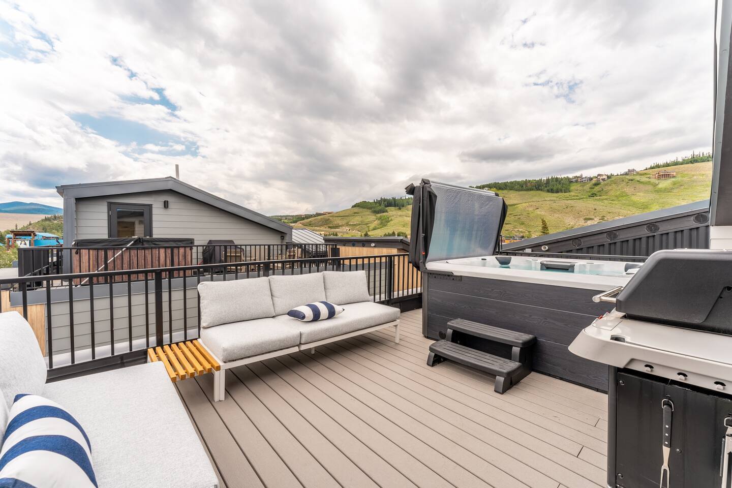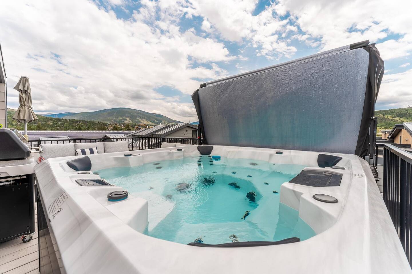 Your cozy luxury getaway awaits in the center of Silverthorne where, after memorable outdoor experiences, you can enjoy chilling out with family and friends on the private roof deck in your hot tub, cooking on the grill and taking in the stunning views with a few drinks.